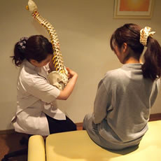 カイロプラクティックカルテ、歪みチェックを経てあなたの持つ体のゆがみについて説明します。ゆがみの説明は、模型(背骨や頭蓋骨)を使い、分かり易く行います。